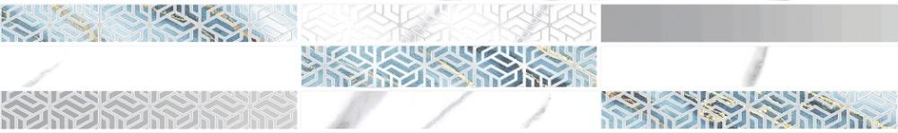 Глянцевый бордюр с геометрическим узором в темной гамме. Созет современные акценты, дополняя мраморную эстетику коллекции графичными элементами.