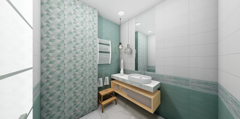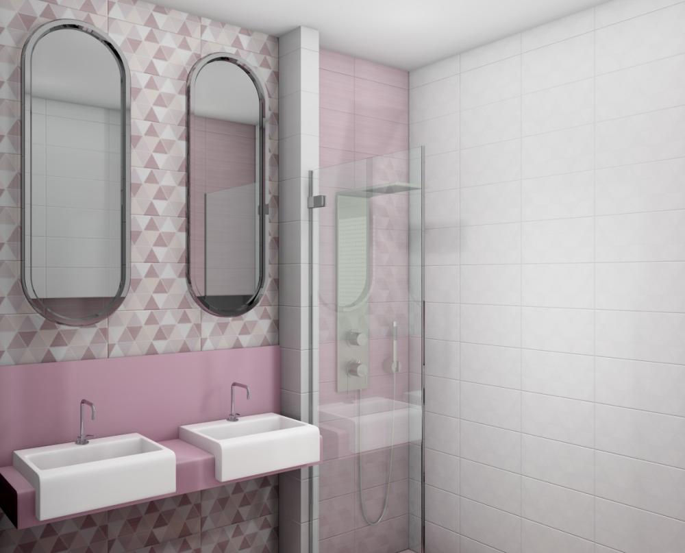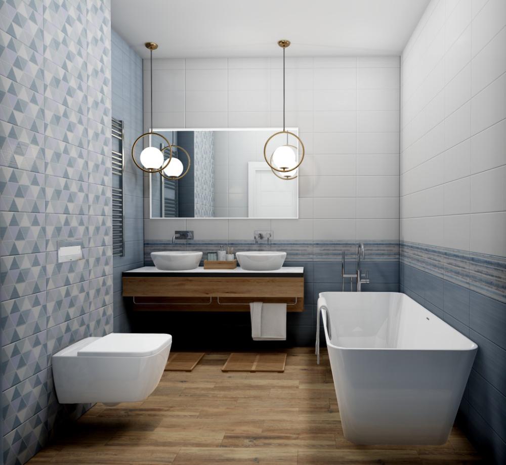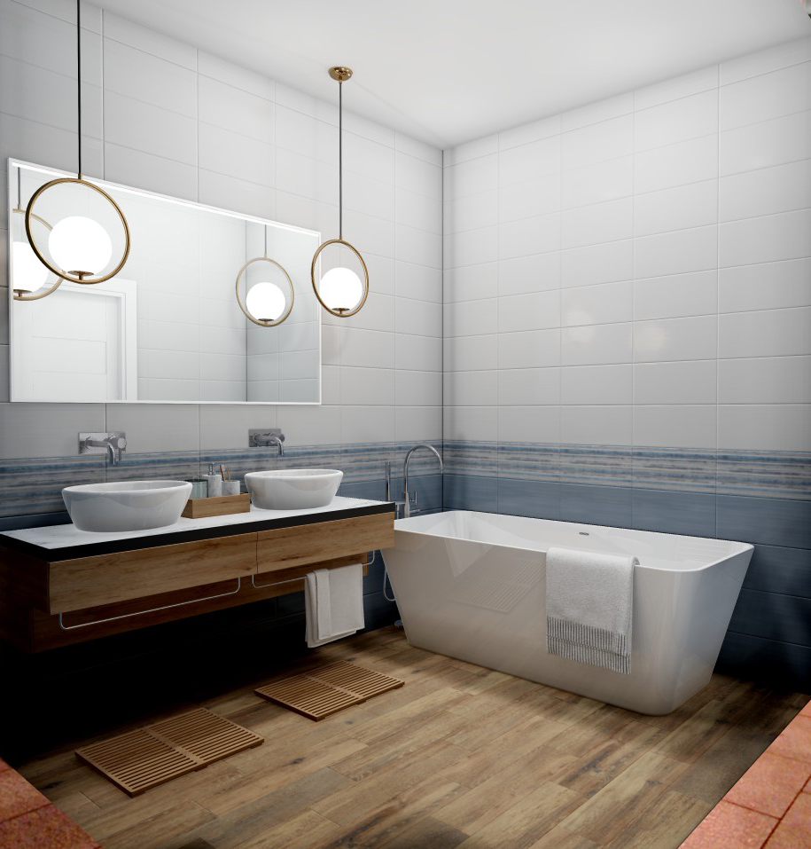 Современный вариант отделки — Декор "Блум" (Bellezza (Беллеза)). Глубокие тона (белый) придают пространству характер. Формат 200 × 400 востребован в проектах премиум-класса. Поверхность глянцевая.