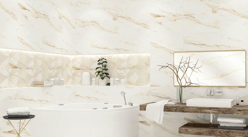 Дизайнерский выбор — Декор "Calacatta Royal" (Azori). Универсальные тона (бежевый) служат идеальным фоном для любого интерьера. Формат 315 × 630 подходит для классической и современной укладки. Поверхность плитки Calacatta Royal - матовая.
