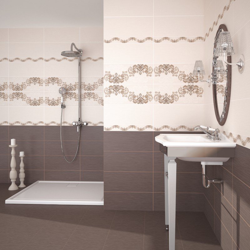 Современный вариант отделки — Напольная плитка "Amati" (Azori). Глубокие тона (коричневый) придают пространству характер. Формат 420 × 420 востребован в проектах премиум-класса. Поверхность матовая.