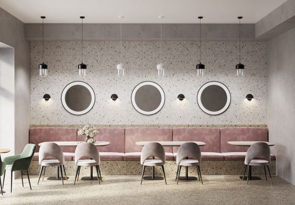 Профессиональное покрытие от Axima - Напольная керамическая плитка "Монца". Наиболее хорошо сочитается со стилями терраццо. Цвет: бежевый, коричневый, светло-коричневый, матовая поверхность, квадратной формы. Идеально подходит для ванной, кухни. Коллекция Монца от Axima — выбор мастеров и идеальный баланс практичности и эстетики.