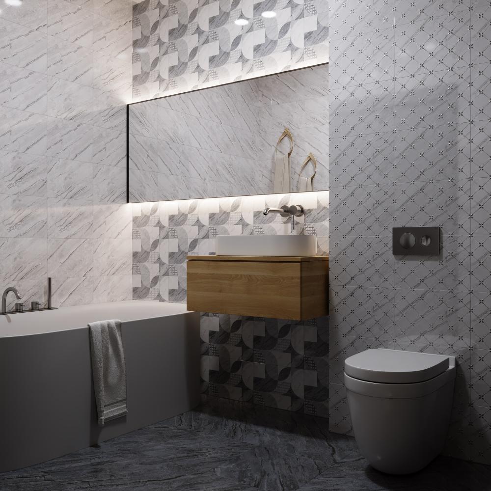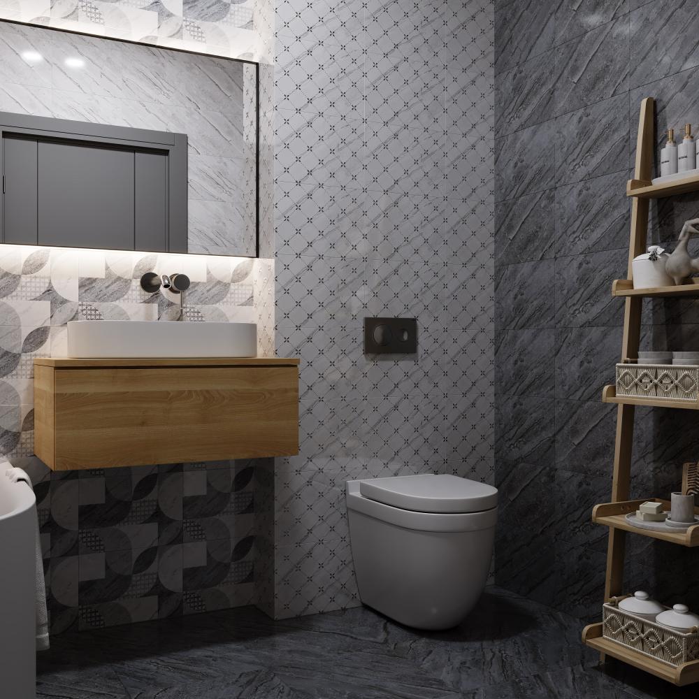Матовая напольная плитка с каменной текстурой. Обладает антискользящими свойствами, сочетая практичность с эстетикой стиля модерн. Идеальна для создания целостных интерьерных решений.