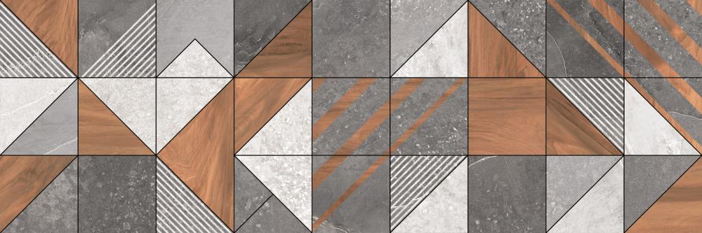 Современный вариант отделки — Плитка настенная "Kioto Triangle" (DELACORA). Глубокие тона (коричневый, серый) придают пространству характер. Формат 300x900 востребован в проектах премиум-класса.