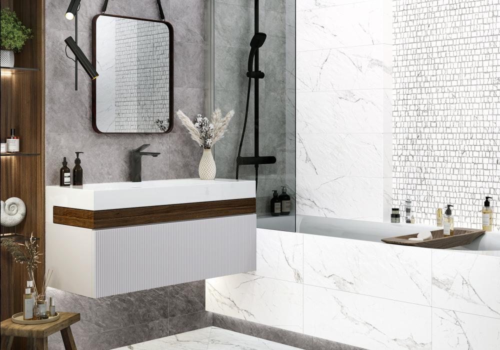 Для создания гармоничного интерьера выберите "Laurent" от ALMA CERAMICA. Цветовая гамма Laurent (серый, темно-серый) будет выглядят благородно в любом освещении. Практичный размер 246x740 упрощает укладку.