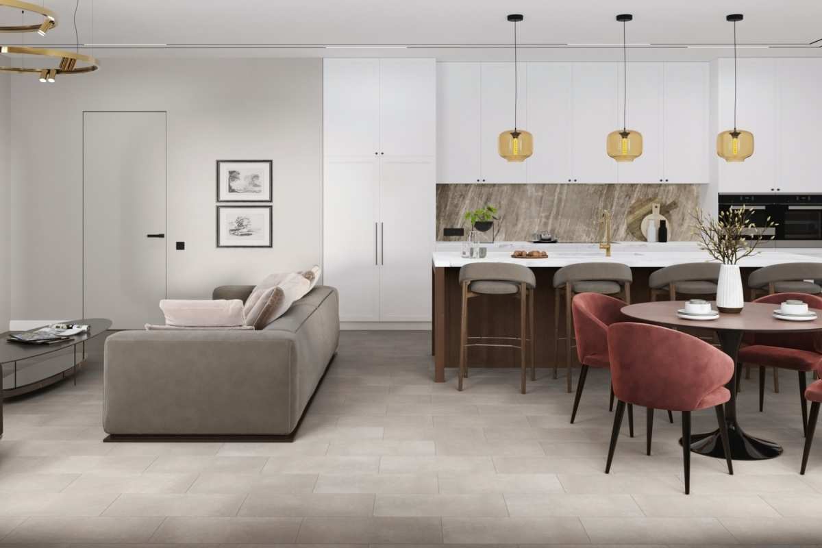 Коллекция Ascent Strong от бренда Damy Floor в декоре «Монблан» — это премиальный кварцевый SPC-ламинат 43 класса износостойкости с дизайном под натуральный камень Плитки формата 610×305 мм толщиной 5 мм с четырехсторонней фаской и матовой поверхностью благодаря технологии DAMY TRUE STONE воспроизводят более 40 неповторяющихся текстур камня. Усиленный нанокомпозитом с углеродными трубками (DAMY DEFENSE) материал обладает 100% влагостойкостью и стабильностью геометрии. Рельефный слой DAMY KINESTHETICS создает антискользящий эффект и тактильные ощущения натурального камня. Покрытие соответствует классу пожарной безопасности КМ2, совместимо с теплым полом до +28°C и подходит для жилых и коммерческих помещений с высокой нагрузкой.